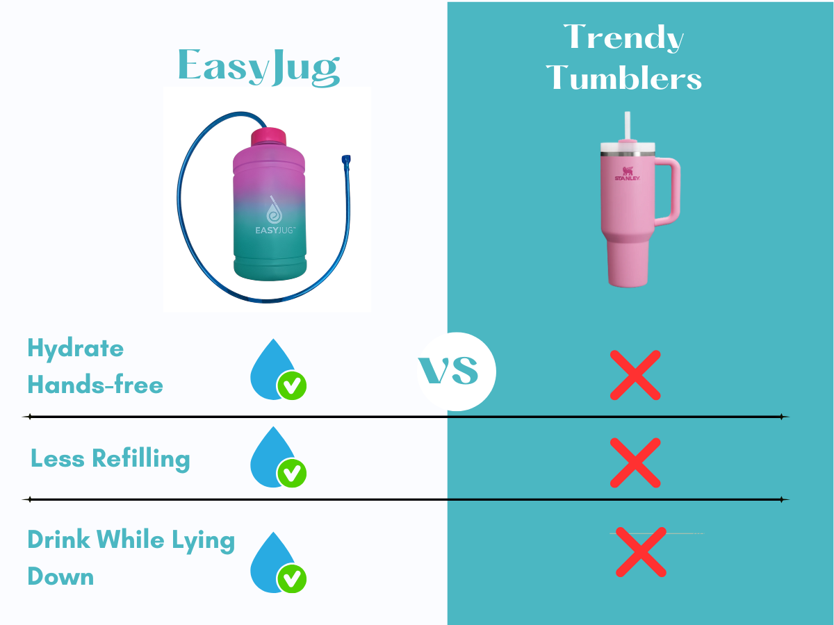 EasyJug is a 2.2 liter BPA FREE breastfeeding water bottle with a 47 inch long straw that provides convenient and comfortable hydration. Support your health and increase milk production by staying hydrated with EasyJug.